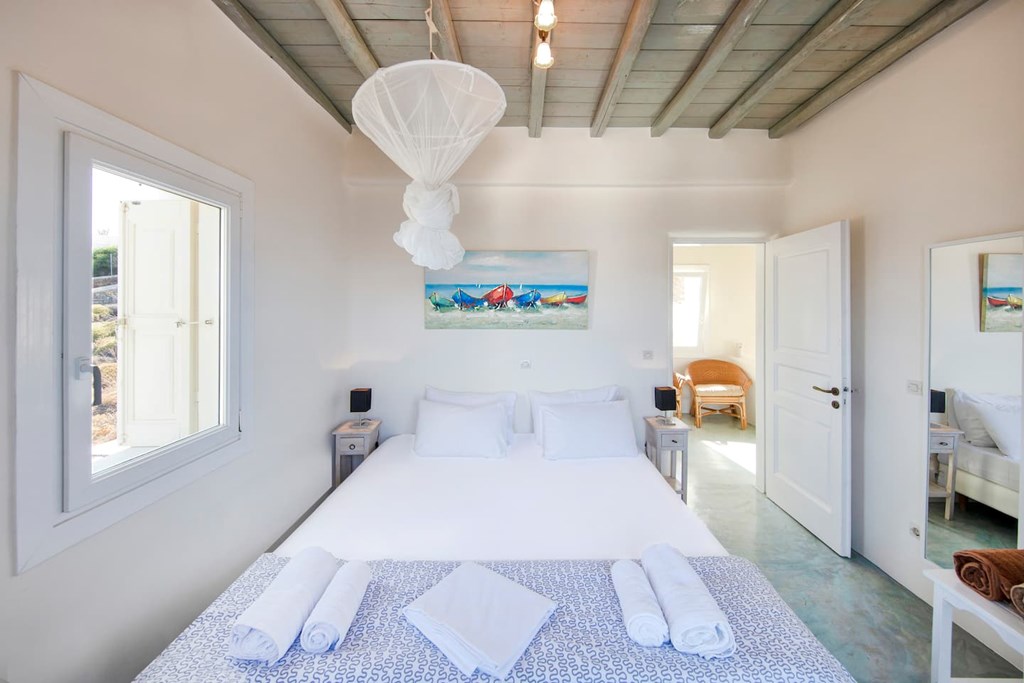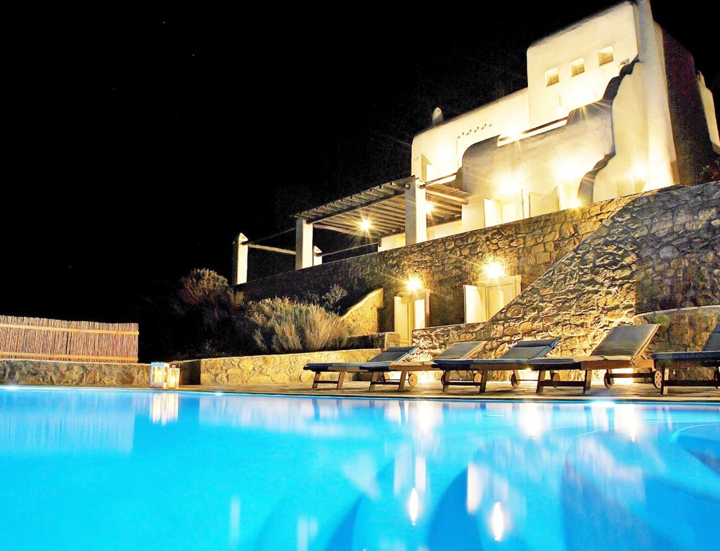 Welcome to Villa Kappas! This traditional Villa is situated near the marvelous golden sands of Agios Sostis beach, famous for its unspoilt nature and turquoise waters. The villa enjoys a privileged position with extensive sea view over the Aegean Sea and the northern coast of the island, which unveils the true beauty of Mykonos Greece original landscapes. It is eight minutes away from Mykonos town and near to island's cosmopolitan attractions. The style of this villa is exquisite: the smooth-edged architecture donates to the exterior of the building a pure look, while the interior is sober and embellished with flair. The bamboo pergola is a relaxing place to enjoy cold drinks and aperitifs prepared from the outside pool bar. The villa has its own private pool with infinite view to the sea. INCLUDES: - Private Pool, Pool Bar, Outdoor BBQ, and Infinite View - Airport Welcome on Arrival and Rental Car Assistance - Welcome Pack (Snacks, Bottled Water, and Beer) - Arrangement of Housekeeping Cleaning Times - Concierge and Chef Services Upon Request At the backside area there is a huge parking space that can hold more than ten cars. The villa is available for private hire, such as social events, weddings, various celebrations and can seat up to 90 guests. Villa can accommodate up to 12 persons ($60 per guest per night after 9 guests). Cleaning fee of $225 applies. Location: Mykonos, GR Details: 5 nights / 6 bedrooms / Sleeps up to 9 Restrictions: Subject to availability, blackout dates may apply. Cleaning fee of $225 applies. Must book package within 12 months of purchase. Valid: Valid April 21 - June 30 and September 1 - October 19