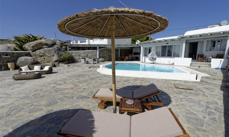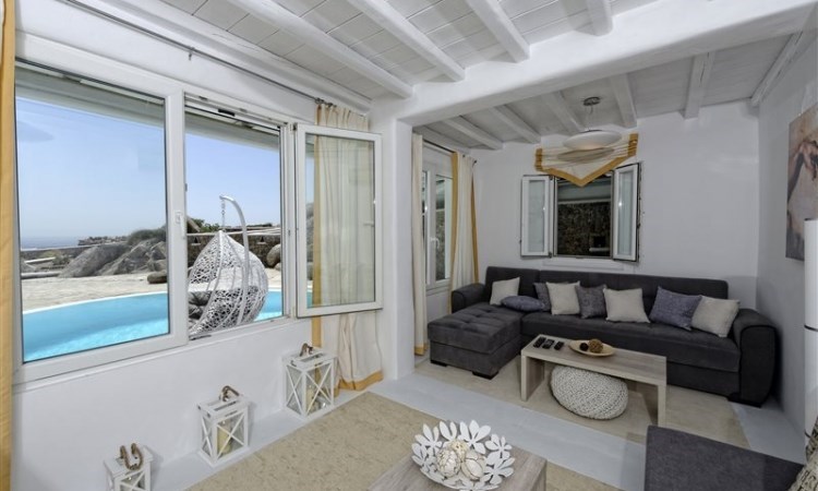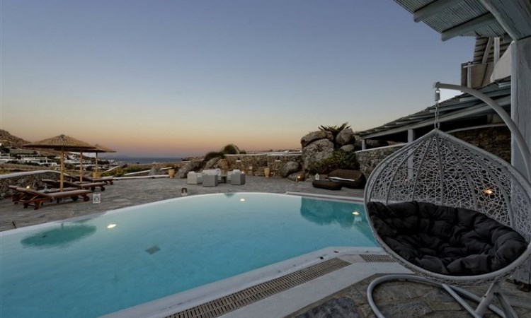 Welcome to Villa Harmony! Located in the peaceful area of Kalafatis, in less than 2 km from the beach, this beautiful property offers an ideal choice for a dream vacation. The ground level hosts the living room, a full equipped open kitchen, a dining area, a bedroom and a bathroom where the underground level hosts four bedrooms, three bathrooms, a small kitchen, a living room and a laundry room.The well designed outdoor area located in front of the villa displays a large modern pool and a great lounge area around it. There is a dining table under the pergola and a built-in BBQ. The pool area is equipped with sun beds and three big umbrellas providing comfort for guests in order to enjoy the sea views. A well kept garden completes the outside living area, making it perfect for family and friends to enjoy each other's company in a beautiful setting. INCLUDES: - Private Pool, Traditional BBQ, and Infinite View - Airport Welcome on Arrival and Rental Car Assistance - Welcome Pack (Snacks, Bottled Water, and Beer) - Arrangement of Housekeeping Cleaning Times - Concierge and Chef Services Upon Request The villa is ideal for families with young children as there is plenty of room for play, or for couples and friends that want to enjoy everything Mykonos has to offer while also being able to retreat into a more private setting. Villa can host up to 11 persons ($60 per guest per night after 9 guests). Cleaning fee of $120 applies. Location: Mykonos, GR Details: 5 nights / 5 bedrooms / Sleeps up to 9 Restrictions: Subject to availability, blackout dates may apply. Cleaning fee of $120 applies. Must book package within 12 months of purchase. Valid: Valid April 21 - June 30 and September 1 - October 19