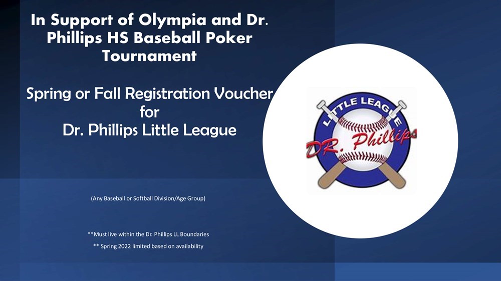 DR. Phillips Little League (DPLL) Spring/Fall Registration Voucher good for ONE Spring or Fall Little League Registration (Any Baseball or Softball Division/Age Group). ***Spring 2022 limited based on availability