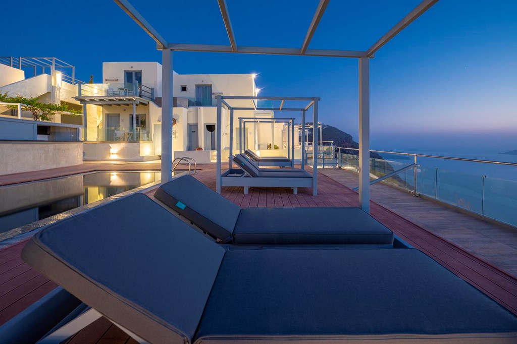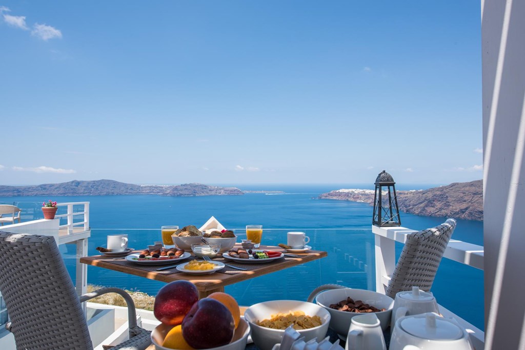 LOCATION The hotel is just 12 minutes from the Santorini Airport. ABOUT THE RESORT The boutique hotel enjoys a prime location on the cliff of Imerovigli. The property is situated on the main road from Fira to Oia, allowing easy access by car to these villages. There is also a bus stop, just 50 m away. Location was grown and touristic developed over the last years. In Imerovigli guests will find traditional taverns, restaurants, cafeterias, shops etc. AMENITIES • External swimming pool • Pool towels • Sun beds & umbrellas free of charge • Snack Bar • Free wi-fi • Personal Concierge • Non smoking rooms • Air conditioning • Ideal for honeymoon • Breakfast area • Free parking • Daily maid service • Luggage area • Fax/mail services • Airport Shuttle (additional charge) • Shuttle Service (additional charge) • Boat Trips (additional charge) • Car & Motorbike Rental (additional charge) • Massage (additional charge) • Pets are not allowed • Doctors on call